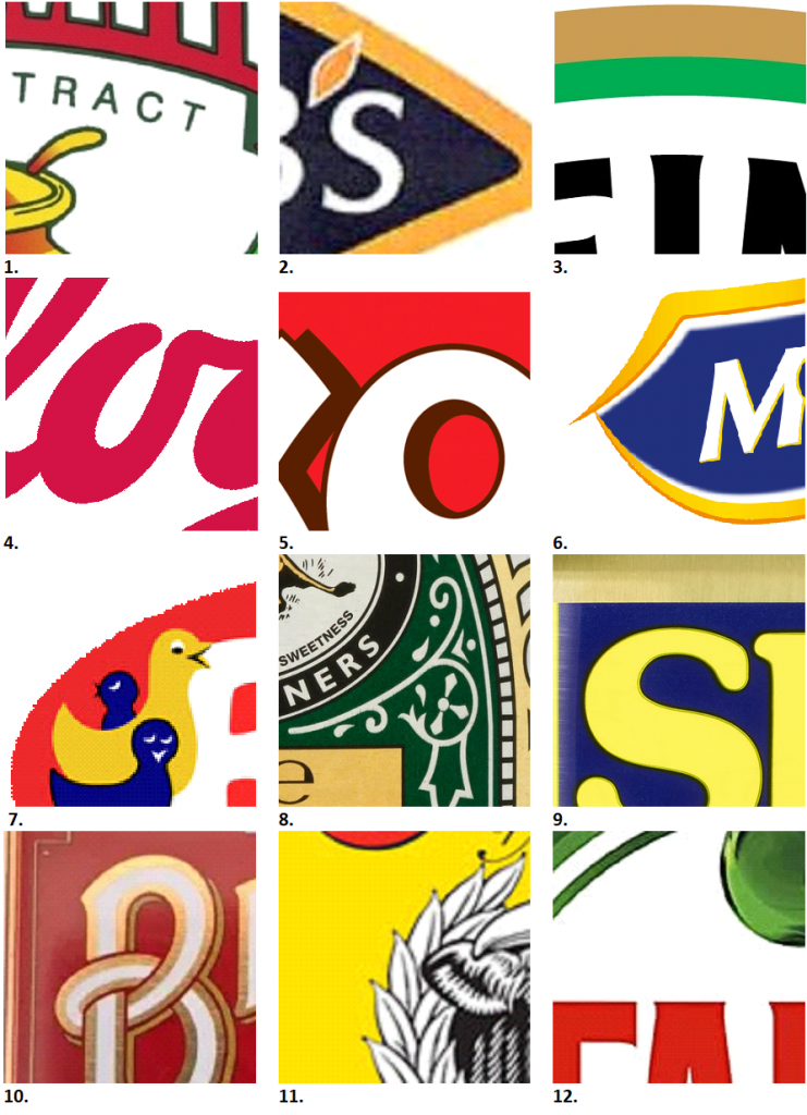 Below are zoomed in pictures from 12 classic British brands. Some are modern logos and some are older variations. Just tell me the name of the brand.